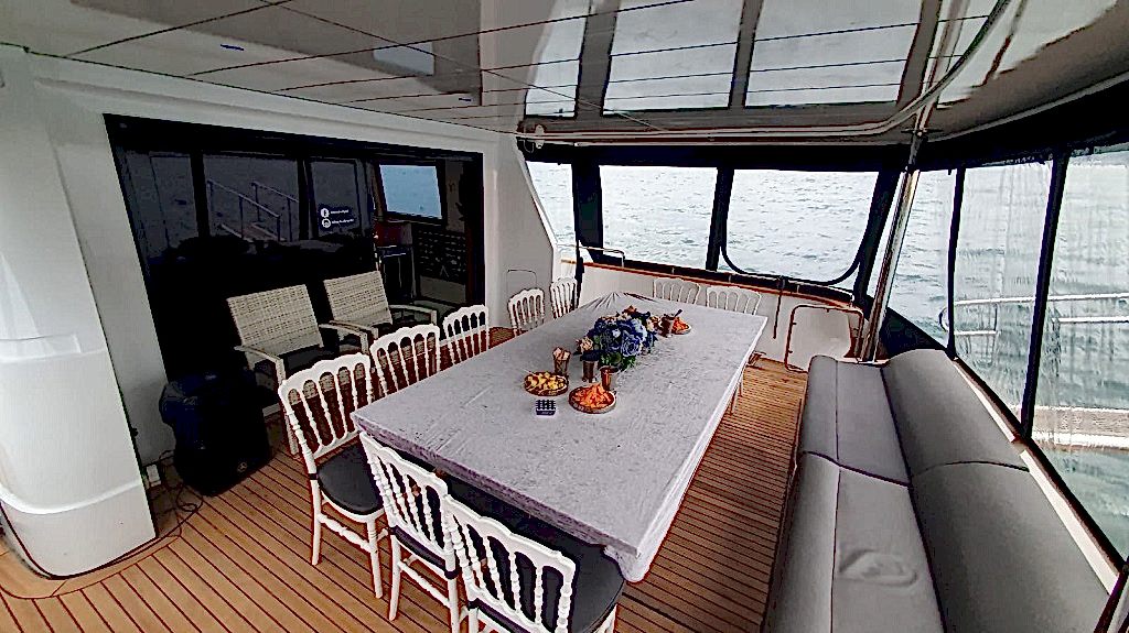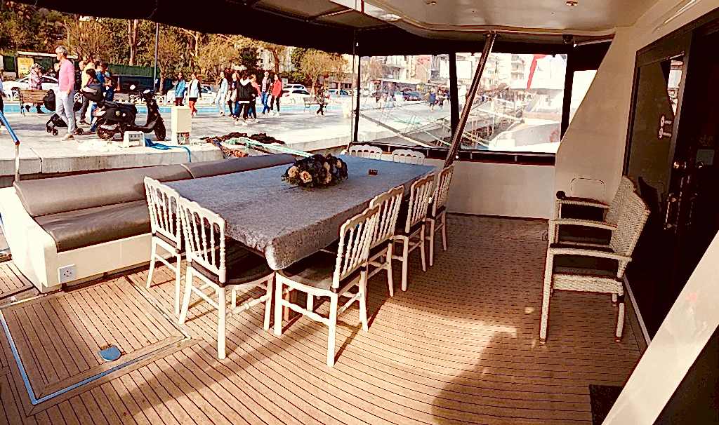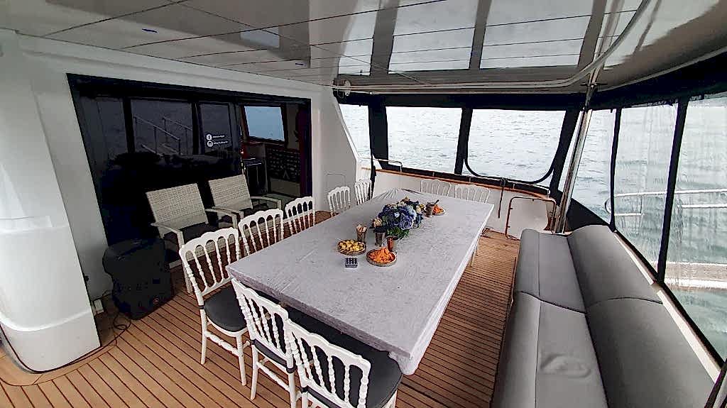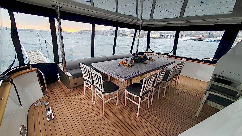 12 ay boyunca yüksek kalitede hizmet verebilecek özelliklere sahip kiralık yat, sadece yaz ayları değil kış ayları içinde kiralamaya uygundur. Yatın ön, üst ve arka kısımları oturmak için kullanılabilir ancak yemek düzeni sadece arka havuzdaki masada kurulur. Bu masa açılıp kapanabilir özelliktedir ve tura katılan kişi sayısına göre büyük ya da küçük boyutta kullanılır. Günlük olarak kiralama yapılıp Adalar ya da Boğazda yüzme turu organize edildiğinde güneşlenmek isteyenler ön taraftaki minderleri ya da üst katı tercih edebilirler.